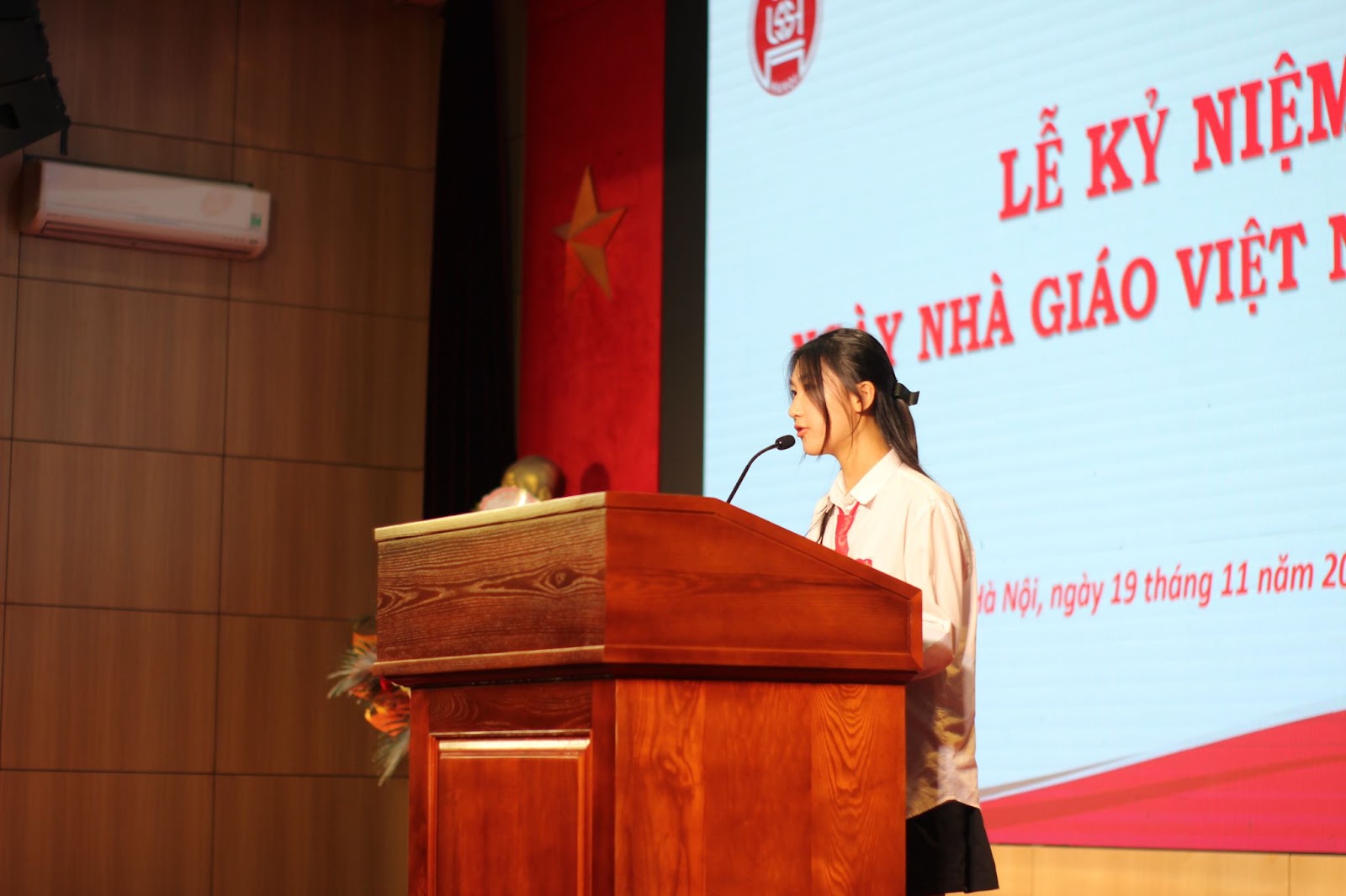 Khép lại phần khai mạc chào mừng, em Lưu Hoàng Yến (học sinh lớp 10 Chuyên Địa lý 2) đã đại diện toàn thể học sinh khóa mới lên phát biểu. Trong bài chia sẻ của mình, em bày tỏ những cảm nhận trong quãng thời gian đầu học tập và hòa nhập tại Nhà trường, đồng thời gửi gắm tinh thần quyết tâm, nỗ lực rèn luyện và phấn đấu trong chặng đường phía trước. Phát biểu của em đã thay cho lời mong muốn chung của các bạn học sinh khóa mới, mong được trưởng thành, khám phá và đồng hành cùng Nhà trường trong những năm tháng tiếp theo.