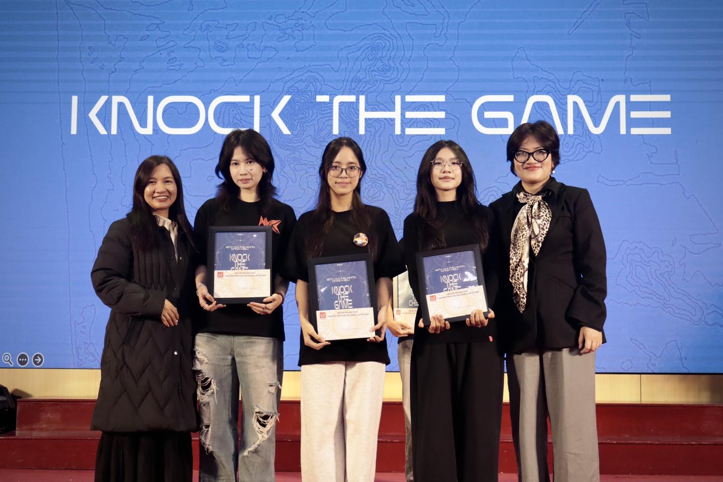 TS. Diêu Thị Lan Phương và TS. Trương Thị Bích Hạnh - Phó Hiệu trưởng Nhà trường chúc mừng và trao giải cho các trưởng nhà