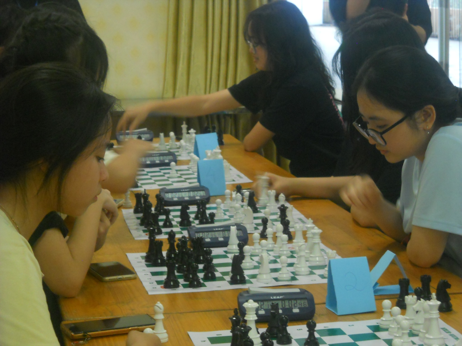 Cùng thời điểm đó, trái ngược với sự sôi động của bóng rổ, nội dung cờ vua diễn ra trong không khí tĩnh lặng nhưng không kém phần căng thẳng. Các kỳ thủ thi đấu với sự tập trung cao độ, cân nhắc kỹ lưỡng từng nước đi.